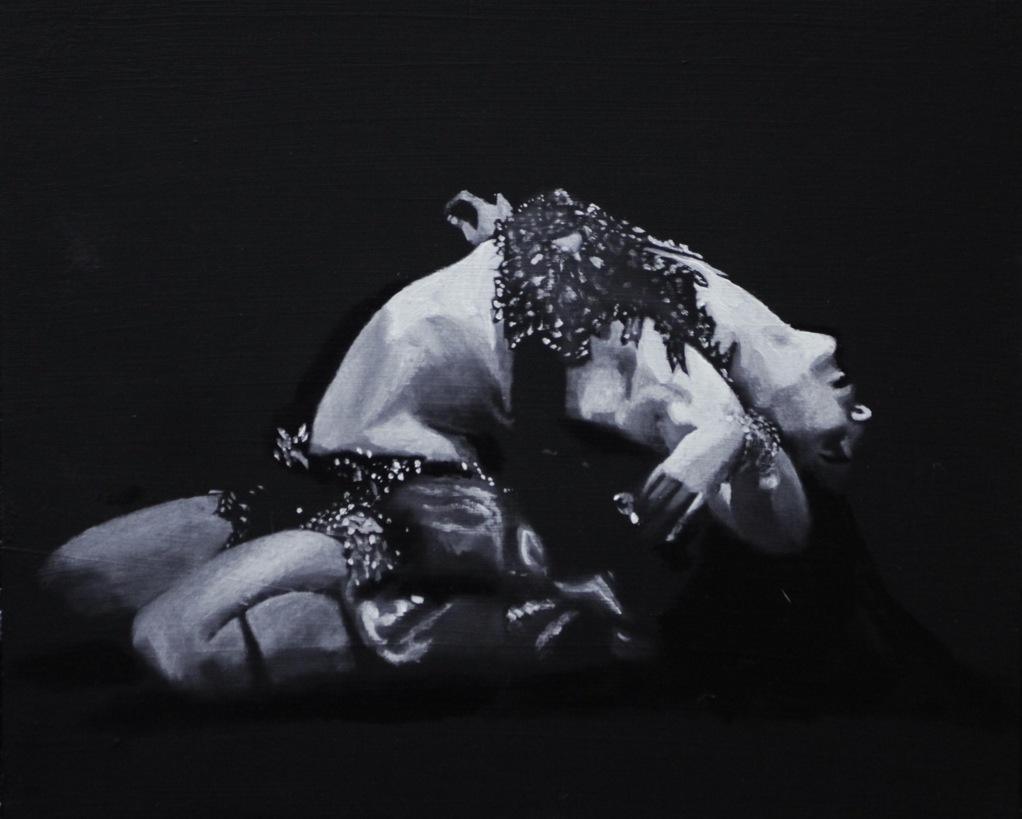"Exquisite Repose" is a captivating painting that exudes a sense of vulnerability and elegance. Oil on gesso board. (The exact size of this painting is 8.75 x 10.75 inches)